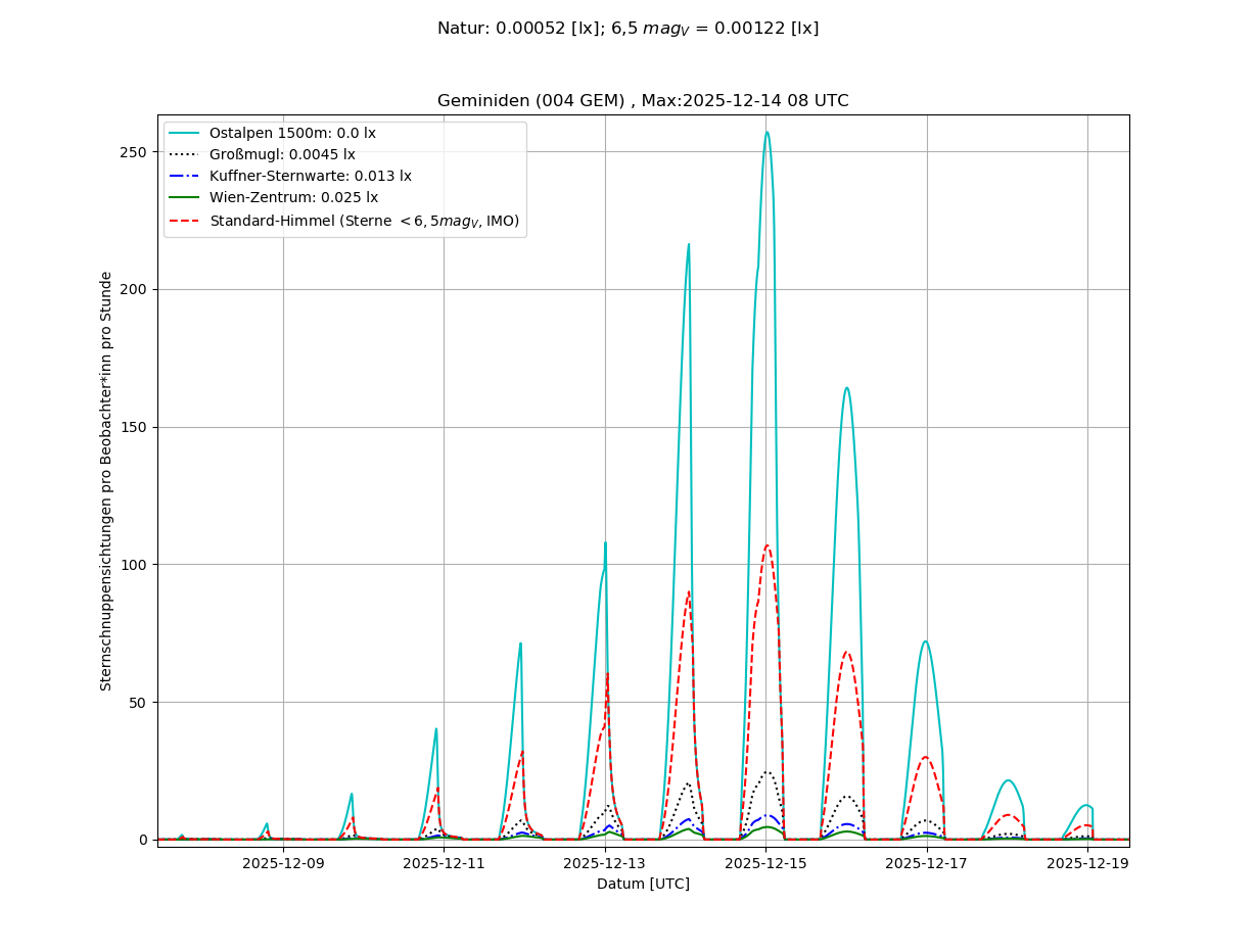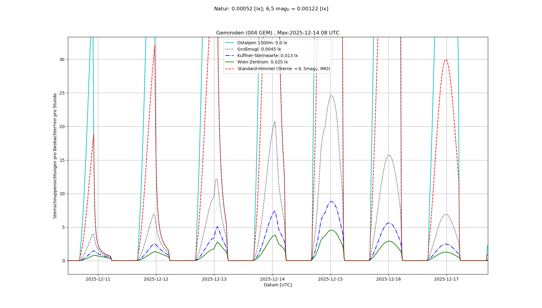 Nachthimmelshelligkeit und sind für die Geminiden mit ihren vielen