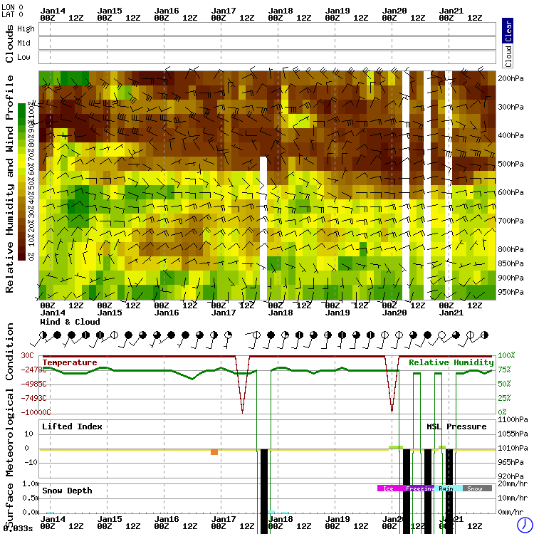 Bedingungen in der freien Atmosphäre für die Kuffner Sternwarte nach dem GFS Modell